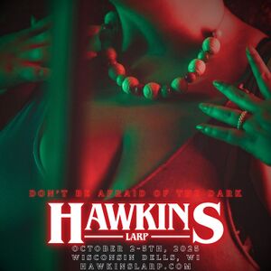 Hawkins is a larp produced by Grimmoire Productions. Set in the 1980s, the game immerses participants in the fictional town of Hawkins, WI, drawing inspiration from media such as Stranger Things and Stephen King's It. Players portray characters ranging from daring heroes to rebellious misfits, navigating a narrative filled with mystery, supernatural elements, and nostalgic 80s vibes.