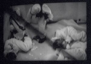 The larp begins with the characters sleeping. As the lights go up they wake up in a white room surrounded by strangers in white uniforms. The last thing they remember is going to sleep in their bed after a normal, uneventful day. How long have they been here? No-one admits to knowing anything. There are surveillance cameras in some of the corners and people yell for help, but nothing happens.