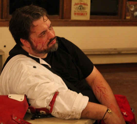 In-game wedding at DR Lone Star after a year of in-character courtship. The characters are romantically involved, but the players are not. (Play, Sarah Lynne Bowman)Finally, distinguishing between bleed and psychological triggers is important. As Maury Brown explains, psychological triggers in role-playing occur when some sort of stimuli activates a previous traumatic memory and induces a response.((Maury Brown, “Pulling the Trigger on Player Agency: How Psychological Intrusion in Larps Affect Game Play,” in The Wyrd Con Companion Book 2014, edited by Sarah Lynne Bowman (Los Angeles, CA: Wyrd Con), 96-111.)) Trigger responses can range from mild to severe. While triggers are a form of bleed-in, as they represent aspects of the player’s psychology affecting the character experience, not all bleed moments are “triggers.” Safety precautions such as in-game signaling and safe words can help community members distinguish between a player having a cathartic bleed moment and reliving the disruptive triggering of previous trauma.