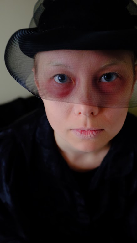 Death was personified in the larp, guiding the characters to the Funeral and delivering the eulogy for those who passed. Photo: Petter Karlsson. CC-BY-NC.- Death arrives personified as a woman: Characters were led outside and instructed to collect flowers for the funeral. Chopin’s “Funeral March” was played in the background.