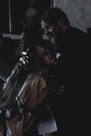 The larp was framed with a beautifully epic theme song composed by Anni Tolvanen, which ushered us in and out of play. Tolvanen also curated a soundscape of dramatic music that echoed through the halls during the larp. The first Act began with a ritualized Punishment scene while standing in a circle, in which the Inspired enacted consequences on their Muses for their escape attempt, also forcing the Muses to punish each other. I have also utilized this technique of starting the larp by dropping characters directly into ritual space when co-designing Immerton (2017) and Epiphany (2018). I find it a particularly helpful practice to emphasize the core themes of the game, help players quickly get past the awkwardness of the first hour of the larp, and create intensely meaningful role-play moments from the beginning that can feed play later. (For further reading on these larps, see Jones 2017; Brown et al. 2018; Kim, Nuncio, and Wong 2018).