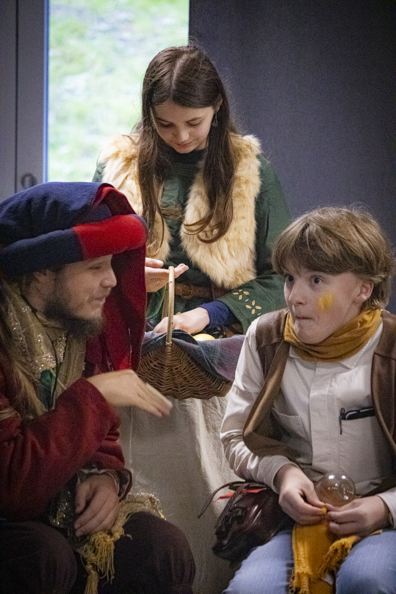 5) Communicate the design before, during, and after the larp through both shared and divided briefings, workshops, intro-scenes, and debriefings. This makes it easier to form consensus and calibrate collectively, while ensuring safe spaces wherein both adults and children can express their thoughts and difficulties and practice the dynamics among peers while supervised by a facilitator. Debriefings and post-play activities, in which everyone can reconnect, reflect and recuperate their experience together (Brown, 2019) and establish a narrativized tale are essential factors in building a sense of community afterwards.