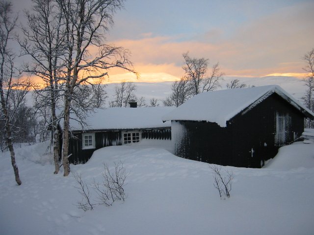 Photographer:Joar Myre Original filename: krutvass-vinter2_640x480.jpg Typical Cabin in the Norwegian mountains. Source: http://www.vjff.net/ipub/pages/hytter/krutvasshytta.php
